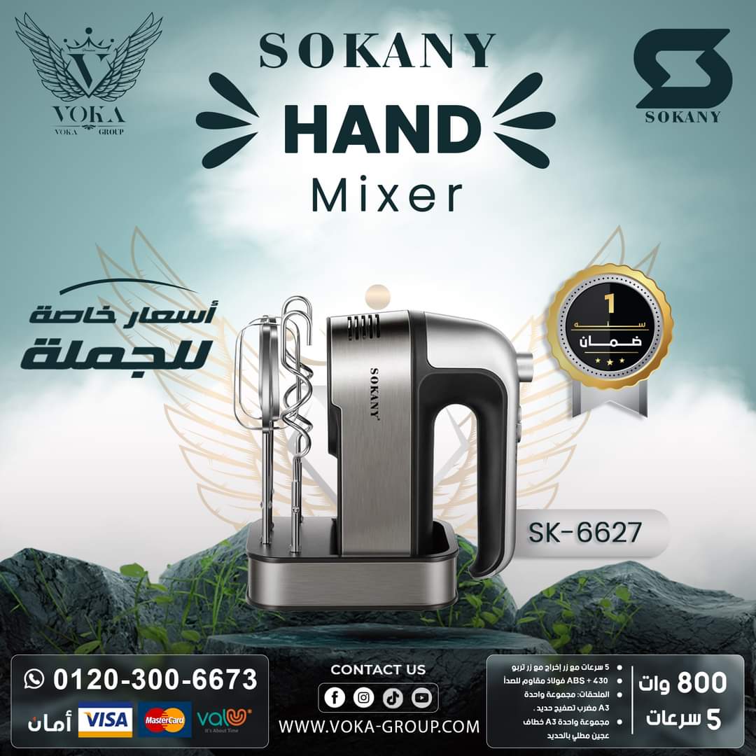 HAND MIXER SOKANY SK-6626 500W Original price was: 2,00 د.إ.Current price is: 1,00 د.إ.