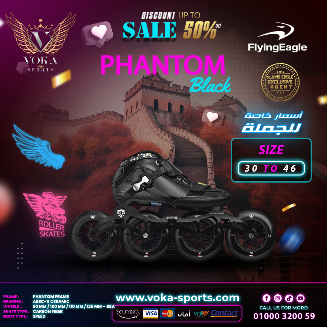 حذاء تزلج بعجلات ماركة فلاينج إيجل ( PHANTOM ) أسود
